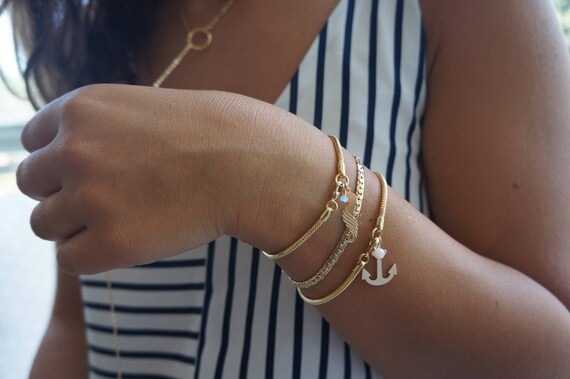 Beach Bracelet, Everyday Gold Bracelet, Anchor Bracelet, Friendship Bracelet, Pineapple Bracelet, 24