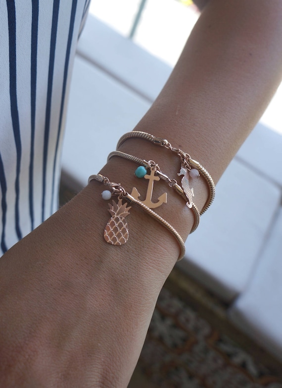Pineapple Bracelet, Rose Gold Bracelet, Beach Jewelry, Everyday Gold Bracelet, Nautical Jewelry, Fri