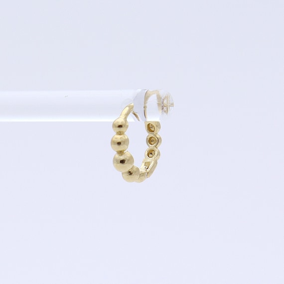 14K 9mm Solid Gold beaded Huggie Hinged Hoop Earring, Dotted Huggie Hoop, Gold Huggie, Small Gold Hoop, Cartilage, Conch, Helix, Tragus