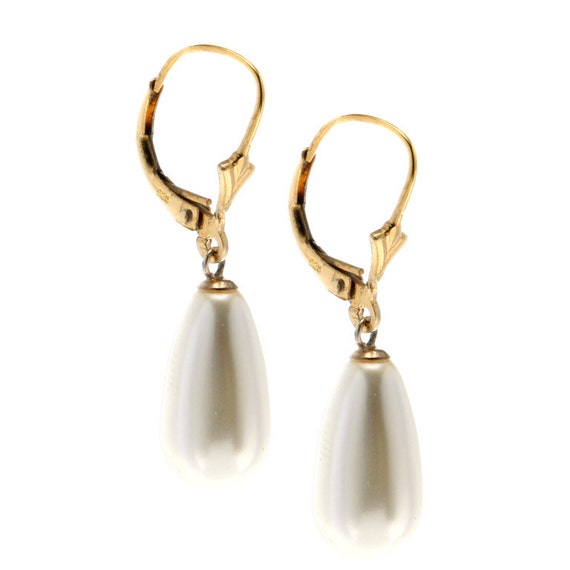 Big white drop pearl earring is made of high quality 14K goldfield.
