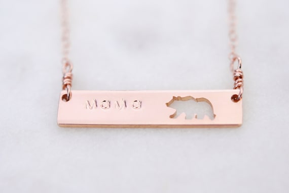 Mama Bear Necklace, Bar Necklace, Bear Necklace, Mama Necklace, Mama Bar Necklace, Gold Bar Necklace