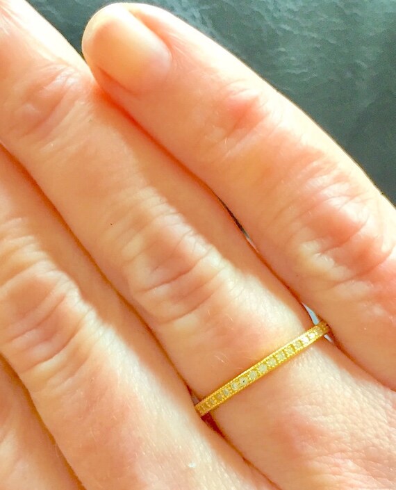 Minimalist 2 mm CZ Yellow Gold Plated .925 Sterling Silver Milgrain Stackable Eternity Bridal Weddin