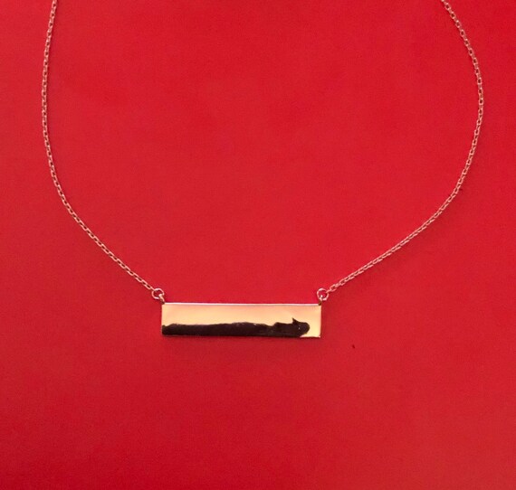 This rose gold blank bar tag necklace is luxurious. The bar features high polish rose gold over 925 sterling silver and a rose gold chain with an extendable length of 16 to 18 inches. Our beautifully hand crafted necklace is also a truly memorable gift.