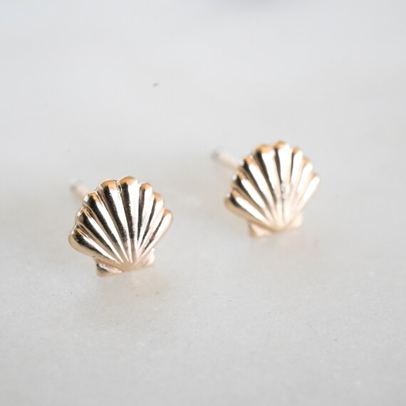 Seashell Earrings, Gold Studs, Seashell Studs, Gold Filled Studs, Earrings, Gold Filled Earrings, 14