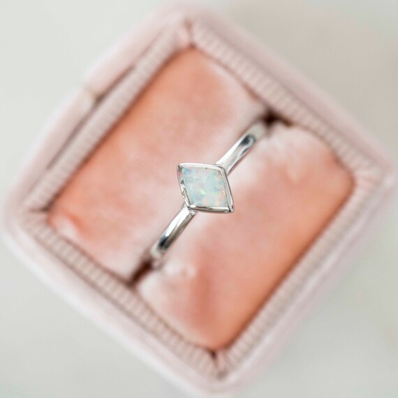 Silver Opal Ring | Diamond Shaped Opal, Geometric Opal Ring, Gemstone Ring, Sterling Silver Opal Rin